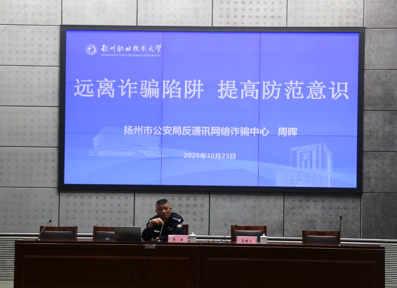 10月为校园防范电信网络诈骗犯罪宣传月,为进一步提升反诈宣传热度,加大校园反诈宣传教育工作力度,为从源头压降师生电诈案件警情,10月23日下午,保卫处联合学生处在映月报告厅开展反诈宣传教育讲座,扬州市公安局反通讯网络诈骗中心周晖担任主讲,全校师生通过线上同步直播的方式聆听讲座。