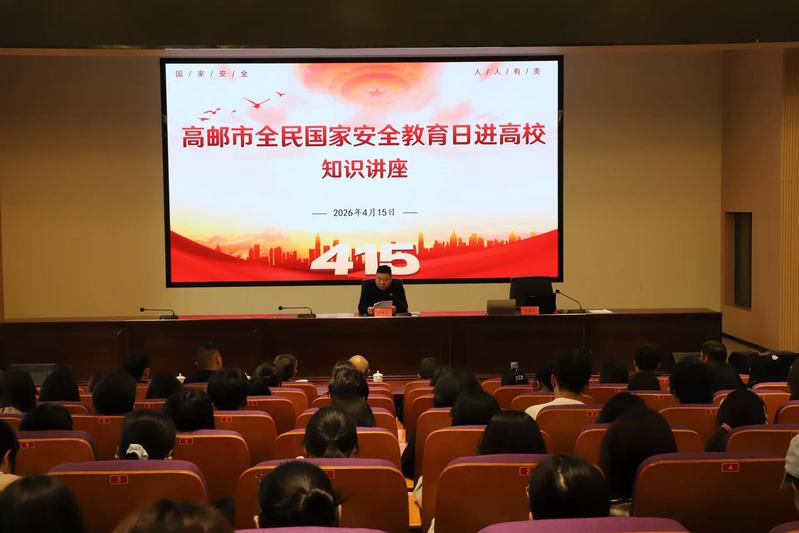 4 月 15 日,在第十一个全民国家安全教育日当天,高邮市委办、高邮城南经济新区与扬州职业技术大学高邮湖校区联合举办统筹发展和安全,护航“十五五”新征程 —— 融校地之力,筑国安之基,育时代新人主题宣传教育活动,面向校区全体学生、教职工代表及城南新区政法条线干部职工,以互动宣传与专题讲座相结合的形式,普及国家安全知识、强化安全法治意识,筑牢校园安全防线。